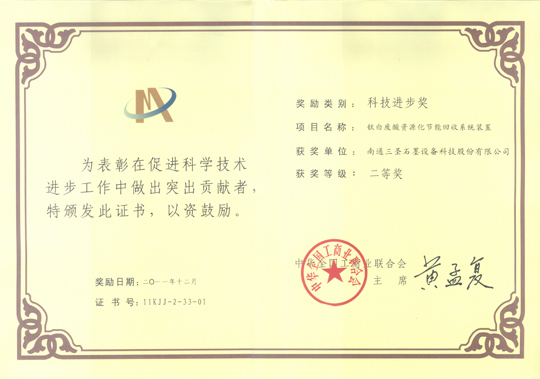 日前,從全國工商聯(lián)十屆五次執委會(huì )議傳來(lái)佳音,南通三圣“鈦白鈦白廢酸資源化節能回收系統裝置”榮獲“2011年中華全國工商業(yè)聯(lián)合會(huì )科技進(jìn)步二等獎”。