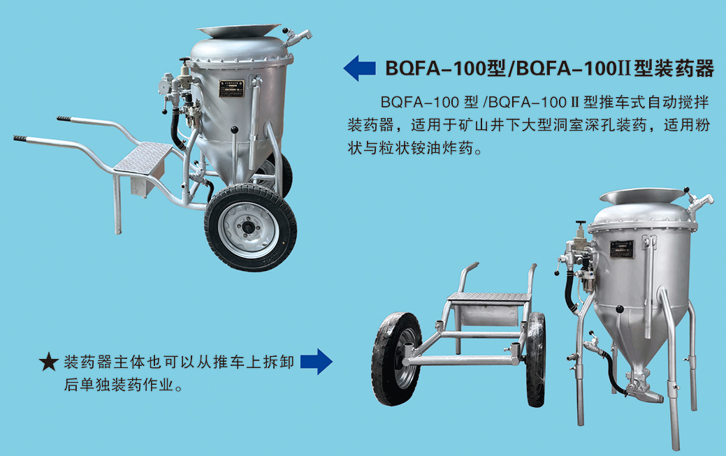 BQFA型自動攪拌系列裝藥器,我公司最新研發(fā)并已生產(chǎn)全面推廣市場,已獲得國家發(fā)明專利。手動攪拌裝藥器歷經(jīng)30余年,現(xiàn)打破傳統(tǒng)產(chǎn)品觀念,讓習(xí)慣改變,迎合市場需求,打造更安全便捷的礦用機械設(shè)備。突破創(chuàng)新,奮力實現(xiàn)自動化礦山,致力滿足各大礦山需求,在繁榮昌盛的道路上繼續(xù)前行。